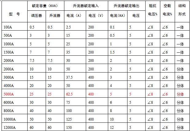 該設(shè)備容量是按5分鐘短時(shí)工作制設(shè)計(jì),如用于斷續(xù)工作時(shí),通電時(shí)間應(yīng)小于2.5分鐘,工作周期應(yīng)大于10分鐘為宜,其規(guī)格及技術(shù)參數(shù)如下表: