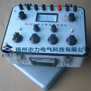 QJ60型教學(xué)用直流單雙臂電橋用來(lái)測(cè)量10-4~1111000Ω的直流中、低電阻,金屬導(dǎo)體的電阻率,導(dǎo)線(xiàn)電阻,直流分流器電阻。