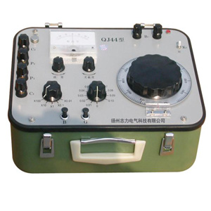 QJ23a型直流電阻電橋測量范圍:1 Ω~11.110MΩ;準(zhǔn)確度:0.1%;內(nèi)附指零儀和電池盒,用來測量其范圍內(nèi)的直流電阻。