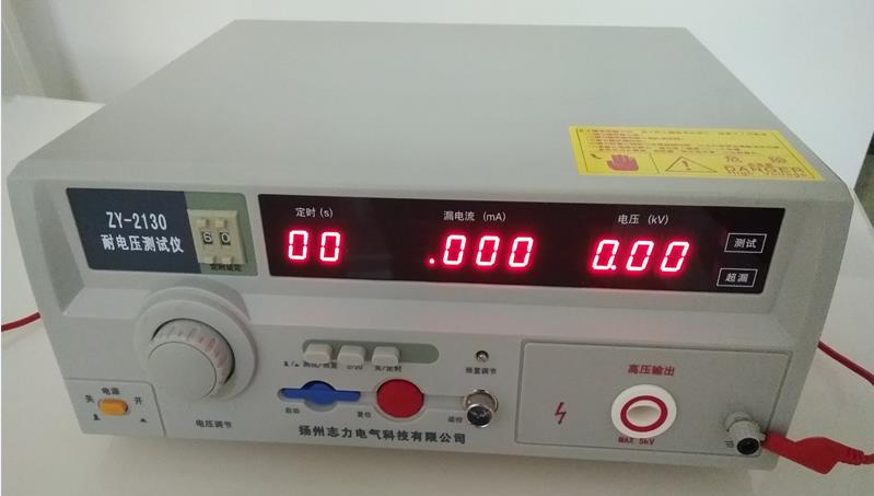 ZY-2130型耐電壓測試儀是測量耐壓強度的儀器,它可以直觀、準確、快速、可靠地測試各種被測對象的擊穿電壓、漏電流等電氣安全性能指標,并可以作為高壓源用來測試元器件和整機性能。揚州志力公司耐電壓測試儀產(chǎn)品系列是按照IEC、CSA、UL、JIS等國際國內(nèi)的安全標準要求設(shè)計的,耐壓輸出范圍1kV~5kV,漏電流測試范圍0~20mA。適合各種家用電器、電源開關(guān)、電線電纜、變壓器、接線端子、高壓膠木電器、電機、醫(yī)療、化工、儀器儀表等,以及強電系統(tǒng)的安全耐壓和漏電流的測試、同時也是科研實驗室、技術(shù)監(jiān)督部門不可缺少的耐壓試驗設(shè)備。