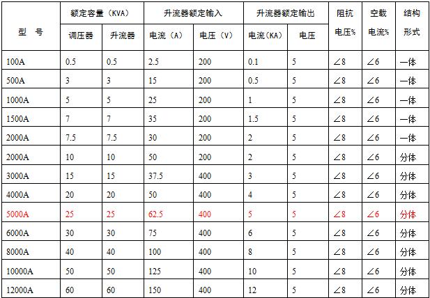 一、SLQ系列升流器(大電流發(fā)生器)主要技術參數(shù):